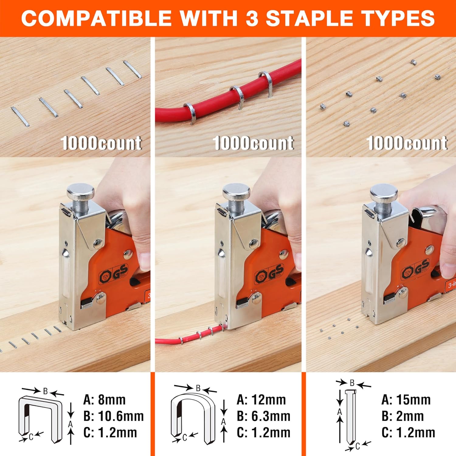 - Pakuotės turinys – 1 x rankinis kablių pistoletas, 1000 x D kablių, 1000 x U kablių, 1000 x T kablių. Idealiai tinka įvairioms kablių užduotims, įskaitant langų tinklelių ir užuolaidų montavimą, lengvą apdailą ir kitus dekoratyvinius projektus.