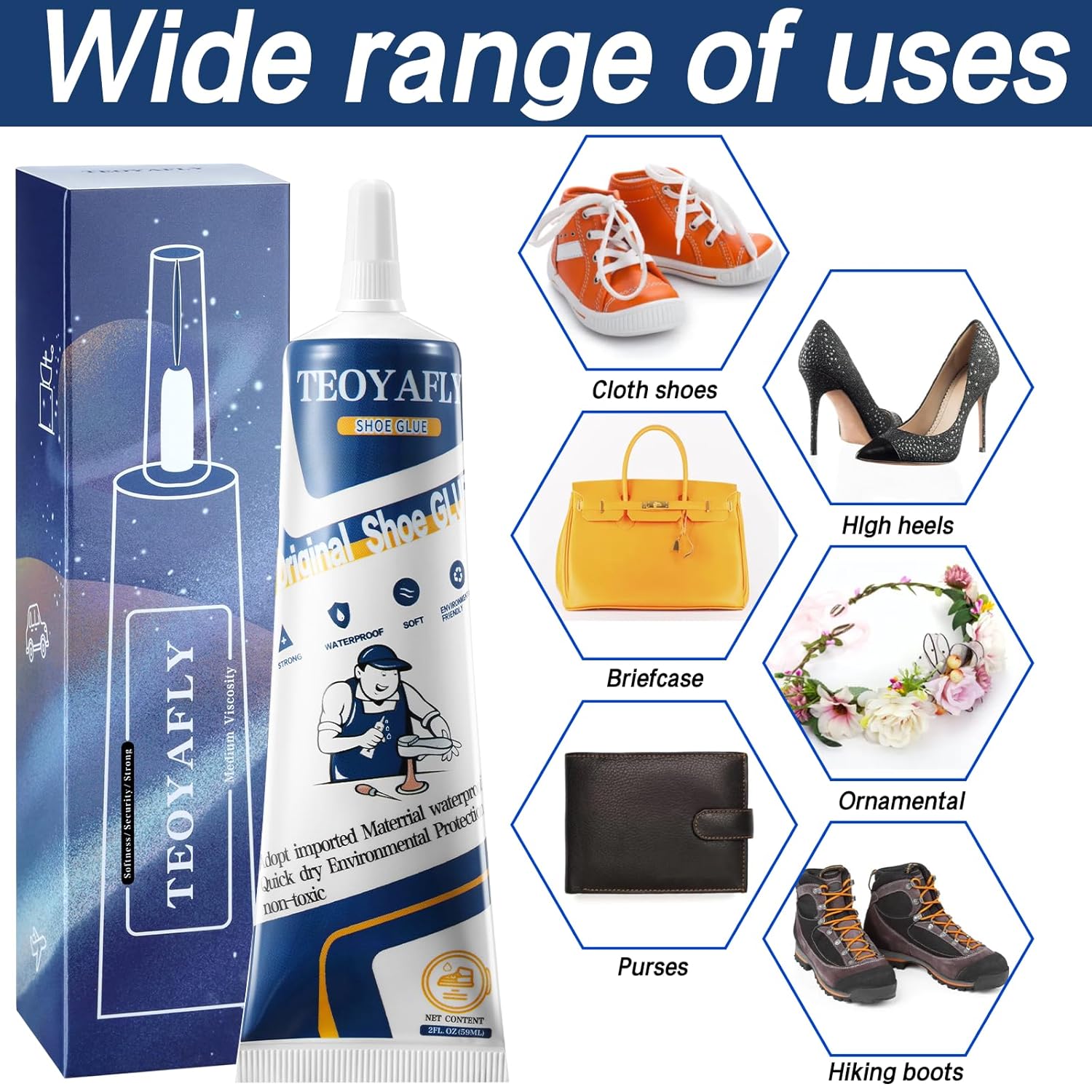 - Atsparūs vandeniui ir tvirti: Skirtingai nuo kitų greitai džiūstančių klijų, TEOYAFLY minkšti klijai pasižymi stipresne atsparumo vandeniui funkcija ir tvirtesnėmis savybėmis. Batų taisymo klijai užtikrina elastingą sukibimą, kuriam įtakos neturi karštis, šaltis ar drėgmė, padengia batus, kad būtų išvengta priešlaikinio susidėvėjimo, mūsų klijai geriau sukimba su lanksčiomis medžiagomis, todėl sutaisyti batai yra atsparesni vandeniui ir tvirtesni. Prašome laikytis mūsų instrukcijų nurodymų, kad sukibimas būtų geresnis.