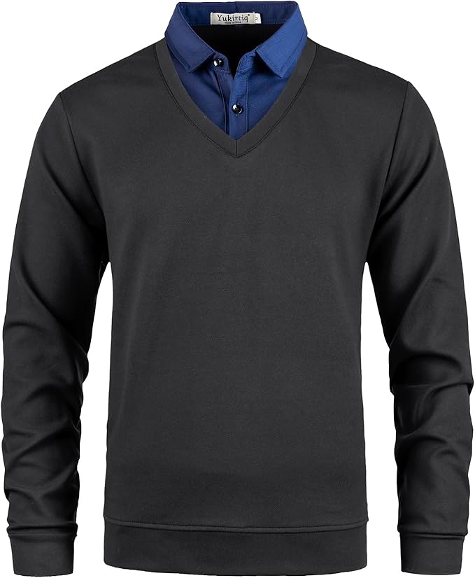 - Vyriškas megztinis su 2 viename marškinių apykakle, ilgomis rankovėmis džemperis arba megztas megztinis, ilgomis rankovėmis marškiniai, megztinis ilgomis rankovėmis, megztas megztinis. Pagamintas iš aukštos kokybės ir lengvos poliesterio medžiagos, kuri visada suteikia šilumos ir komforto jausmą.